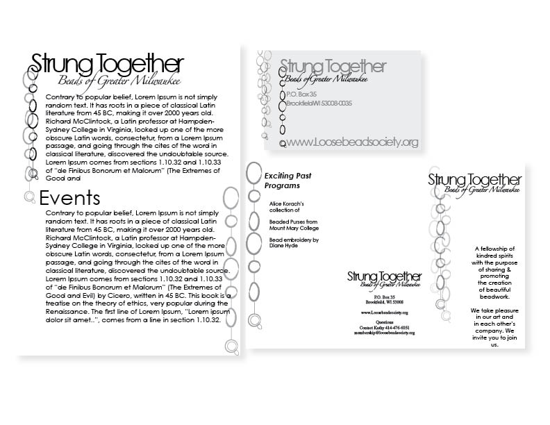 Identity & print collateral created for local bead group. Newsletter, business card & trifold informational brochure.