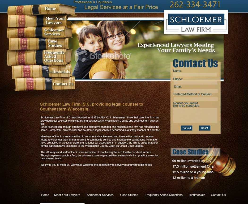 This layout was concepted at Inet web to give this West Bend Law Firm great visual impact to match their great professional impact.